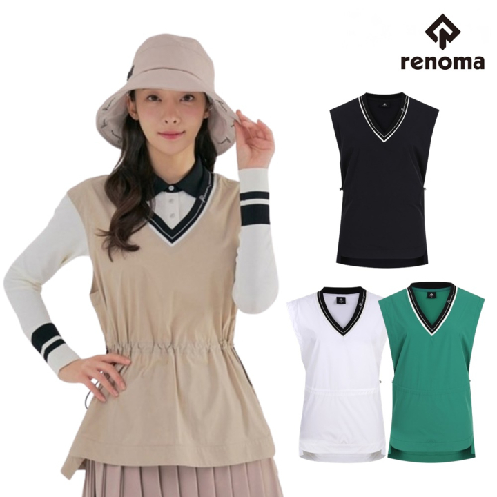 레노마골프 여성 골프 조끼 핏 조절 언발란스 V넥 베스트 EM_5381