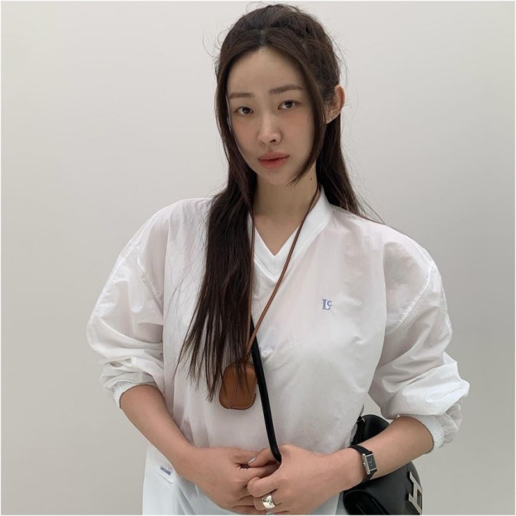 귀여운 아노락 맨투맨과 실버운동화를 신고 에르메스 지갑과 가방을 착용한 차정원님의 캐주얼룩에도 어울...