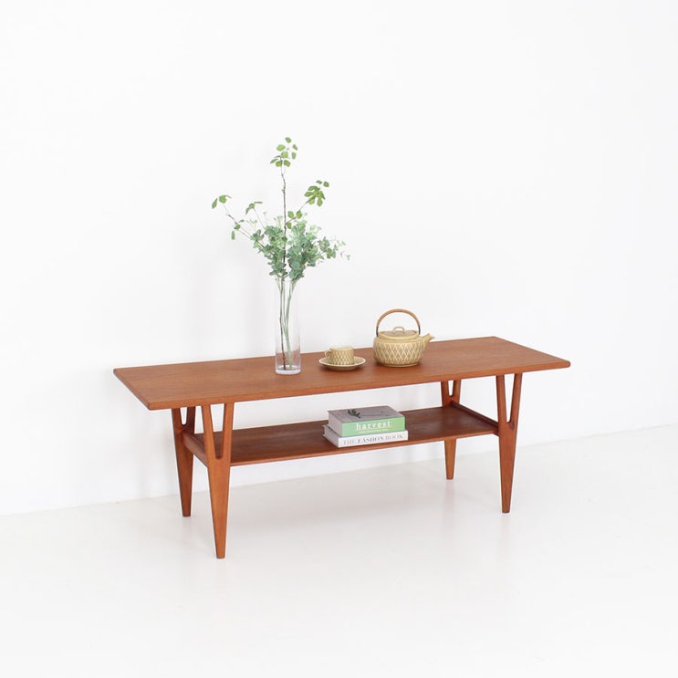 덴마크 빈티지 티크 소파 테이블입니다. 선호하시는 하단에도 선반이 있는 형태이구요. 다리 쉐잎이 유니크...