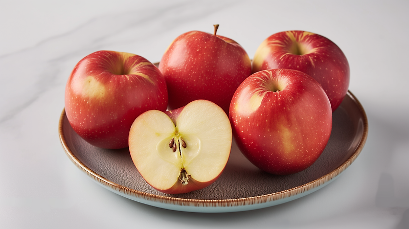 미드저니에서 냉면, 김치찌개 등 식사류는 아직 조금 부족한 듯해서 단순하게 사과 이미지 요청을 해봤습니다. 프롬프트에 apples on a plate --ar 16:9 로 입력합니다. 접시에 놓인 사과를 생성해 달