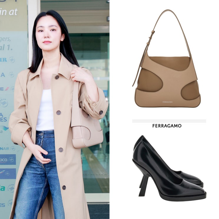 FERRAGAMO 단아하고 도시적인 분위기의 그녀 전. 여. 빈! 차분하고 단정한 착장으로 출국장을 환...