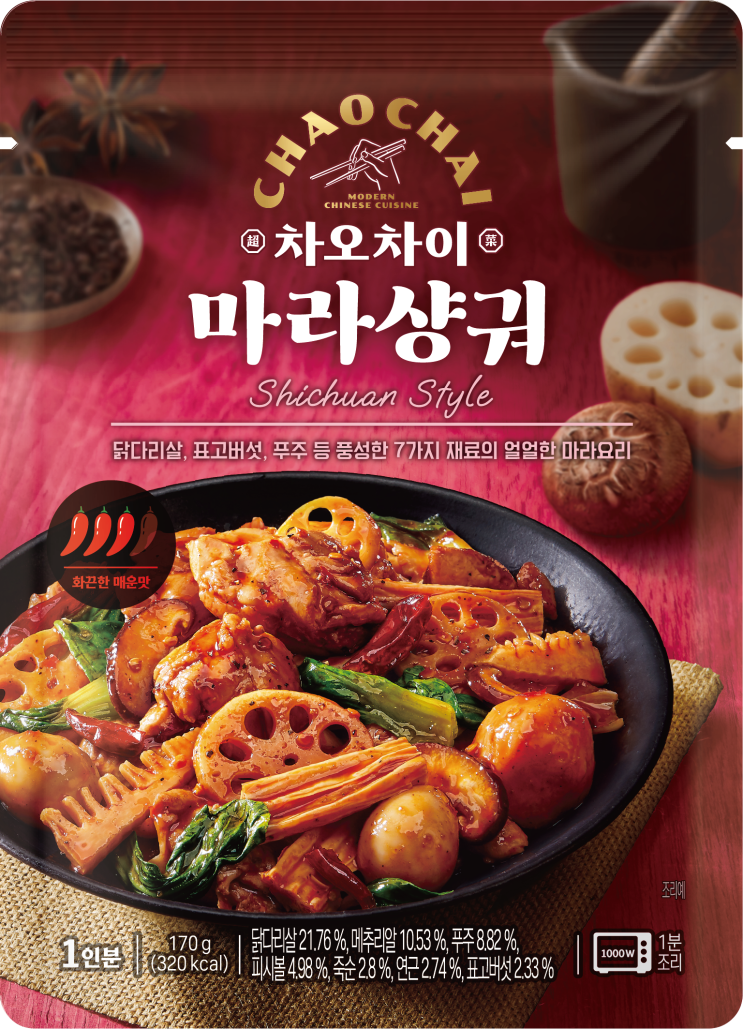차오차이라는 신상 브랜드가 등장했는데, 여기가 새로운 중화미식의 발견이라는 슬로건으로 전자렌지용 소...
