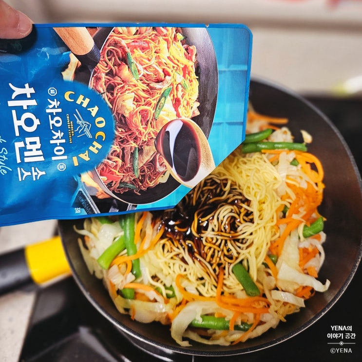 좋은 기회로 차오차이 제품을 맛보게 되었다 새로운 중화미식을 선보인다는 차오차이! 간단히 조리하는 중...