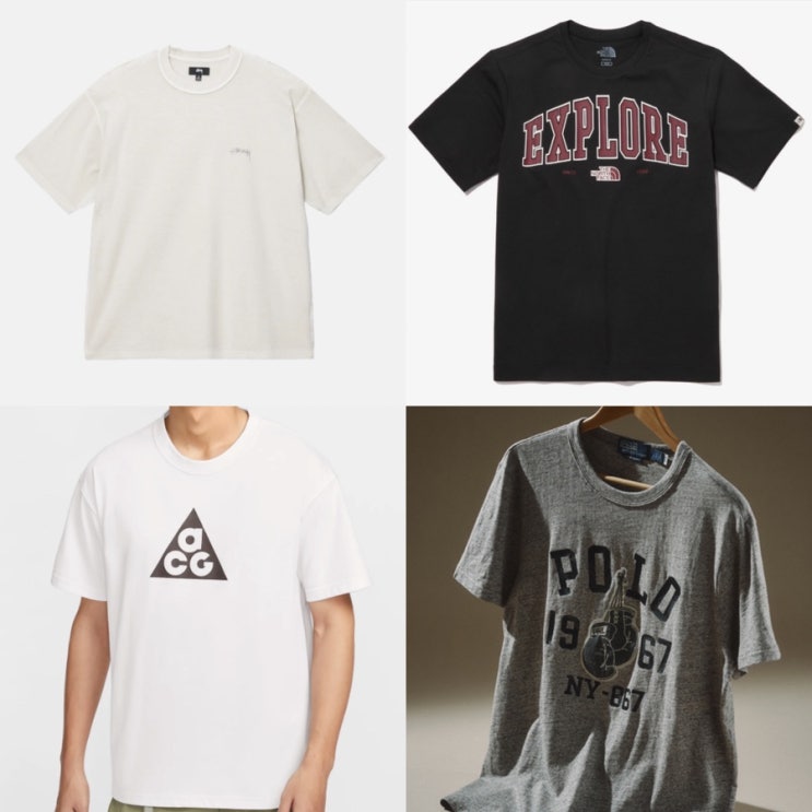 남자 오버핏 반팔티 브랜드 추천 / 스투시, 노스페이스, 나이키, 폴로