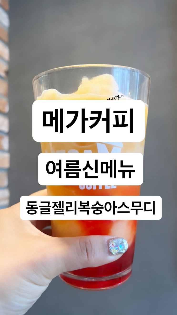 메가커피 동글젤리복숭아스무디 랑 카페라떼