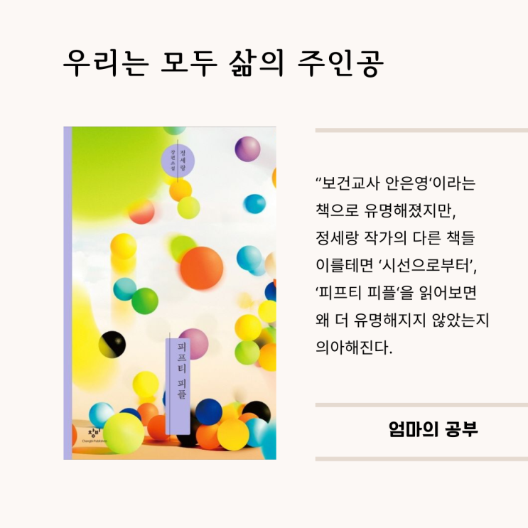 정세랑 소설 피프티 피플 글귀와 서평 피프티 피플 □ 지은이: 정세랑 □ 출판사: 창비 □ 발행연도: 2016...