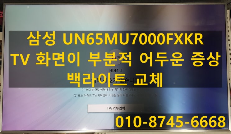 TV수리 삼성 UN65MU7000FXKR 화면이 부분적으로 어두워요 백라이트 고장 불량 교체 안산 수원 시흥 화성 의왕
