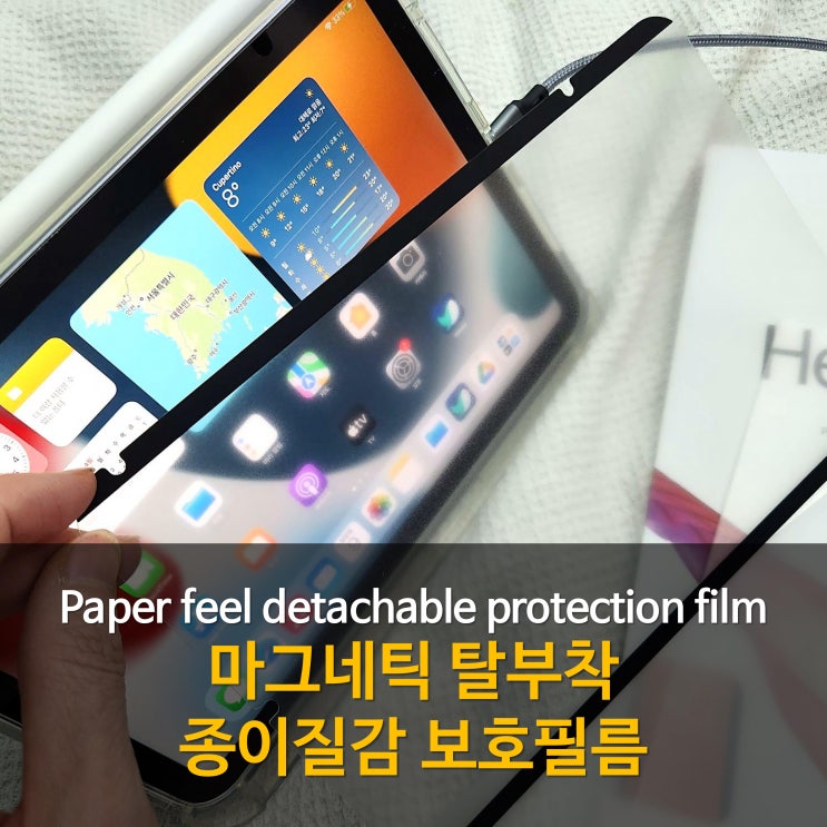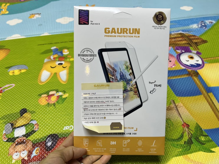 아이패드 미니6 & 필수 아이템 장착 후기 :: ESR 스마트커버 케이스, 힐링버드 종이질감 필름 (미니 사이즈 비교!)