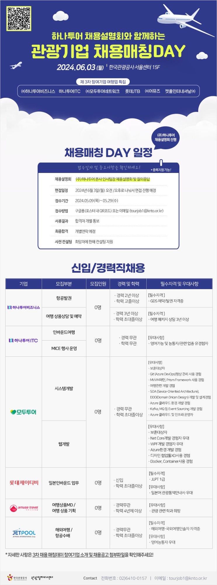 [모집]2024 관광기업 채용 매칭DAY(여행업) : ㈜하나투어비지니스, 하나투어ITC, ㈜모두투어네트워크, 롯데JTB, ㈜어뮤즈, 젯풀인터내셔날㈜