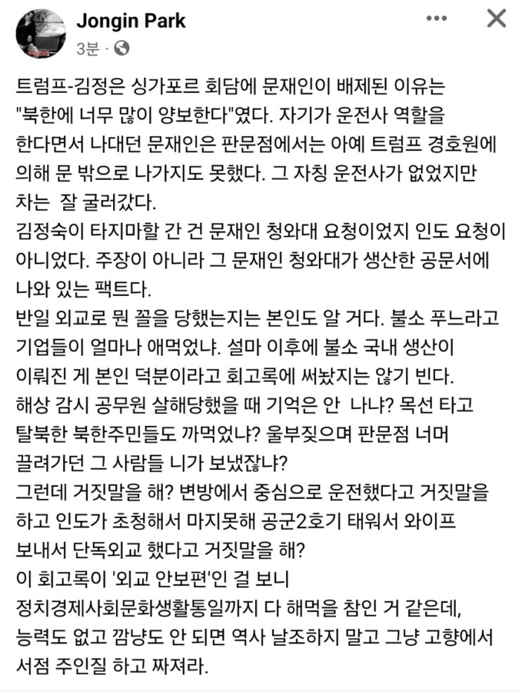 북괴 대변인 같은 문재인 회고록