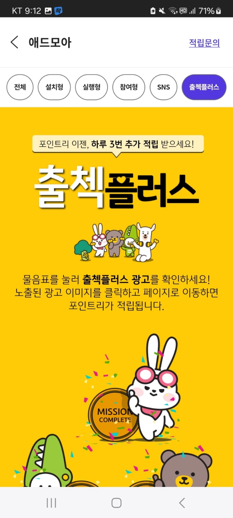 저번에 kb포인트리 출첵플러스의 애드모아 쪽 게임 프로모션에 참여 후 미적립, 그리고 2주 후 에서야 적립...