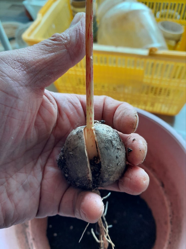 지난해 마트에서 아보카도를 사서 비빔밥을 만들어 먹고 씨앗을 다른 화분에 묻어 두었다 싹을 틔우는 여러...