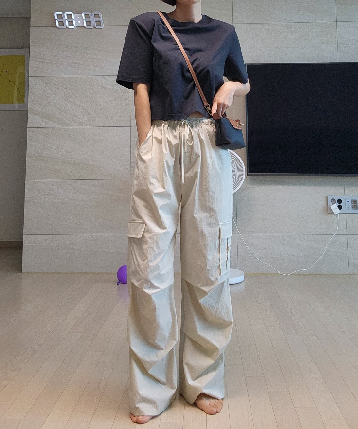 [40대 주말룩] 세미 크롭 티 +카고팬츠 + 롱샴르플리아쥬미니 | 주말 외출 룩 | 동네 마실 집앞 | 아줌마 데일리룩
