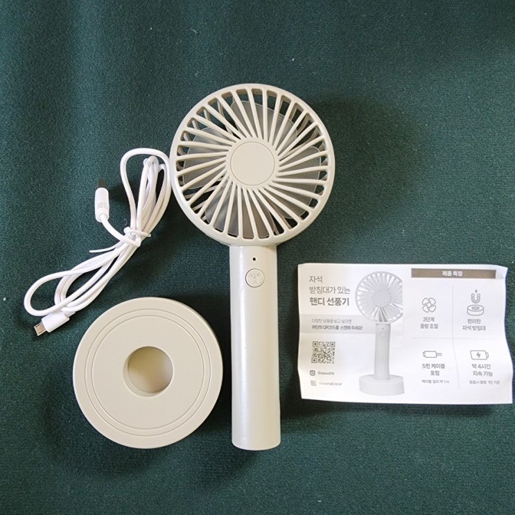 [다이소] 자석 받침대가 있는 핸디 선풍기 • 3단계 풍량조절, 최대 2.5W출력지원 • 1단계로 약 4시간 지...