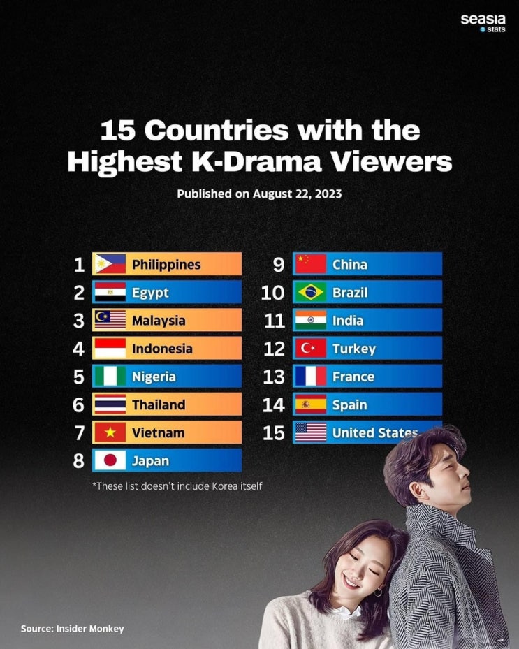 K- 드라마 시청자 국가 순위다. 1위가 필리핀, 2위가 이집트, 3위 말레이시아, 4위가 인도네시아. 예상대...