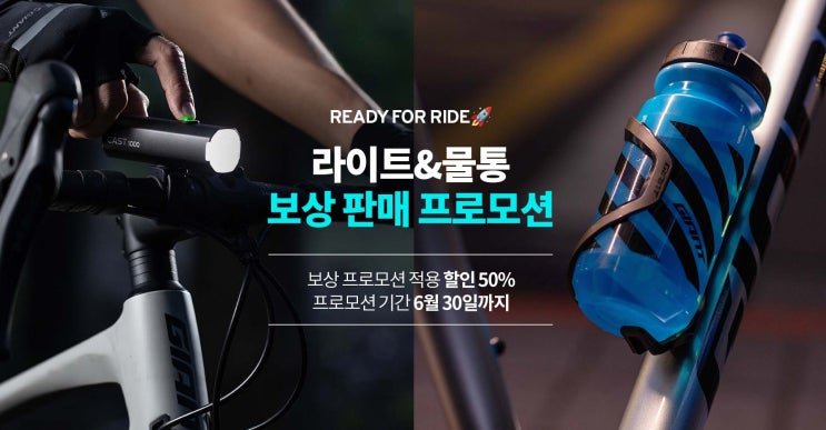 라이트&물통 보상 프로모션 50%할인 프로모션기간 : 5월 1일부터 6월 30일까지 자전거 필수용품 라이트...