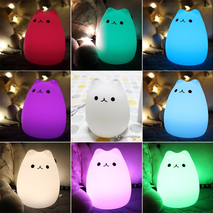 말랑 아기고양이 LED 무드등, 톡 치면 은은하게 색이 변하는 실리콘 터치등!