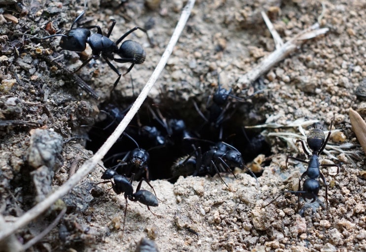 일본왕개미 군체가 결혼비행을 위해 입구를 넓히려 계속 흙을 물어올리는 사진. 결혼비행이란?개미의 번식...