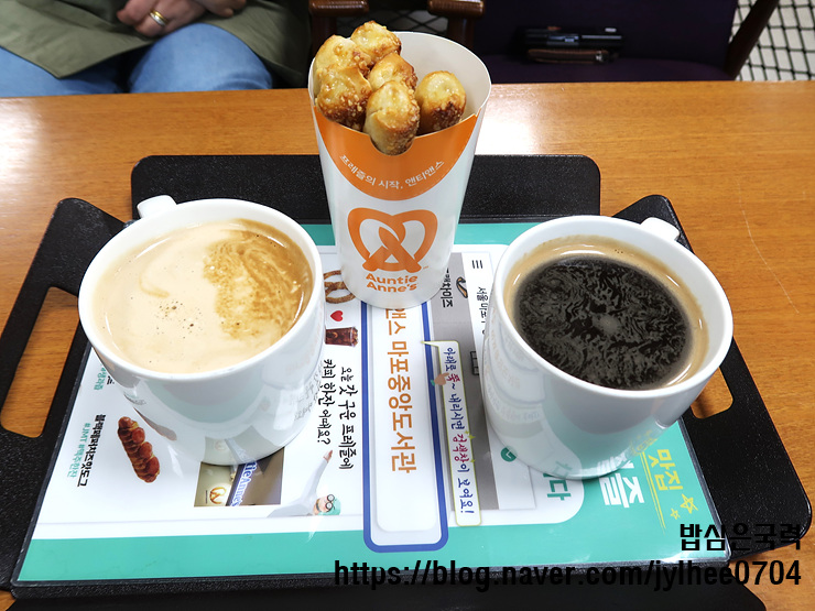 마포중앙도서관 앤티앤스프레즐 카페 스틱 프레즐 강추