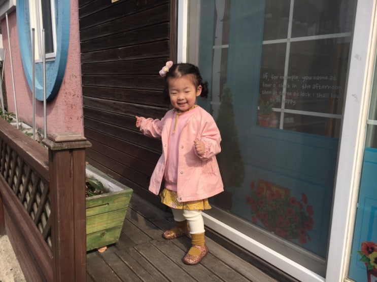 오늘은 언제나 핑크핑크한도니.. 겨자색 양말과 원피스 핑크색 맨투맨과 아우터 그리고 핀과 미니멜리사 지...