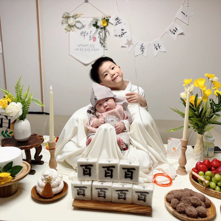 안녕하세요 찌용맘이예요 : ) 어느덧 둘째의 백일이 됐네요 이번에 대여한 백일상이 기대보다 너무너무 예...