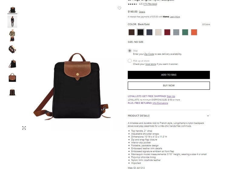 롱샴 블랙핑크 제니 백팩/블루밍데일즈에 재고 있어요!! 한국은 전 컬러 품절!