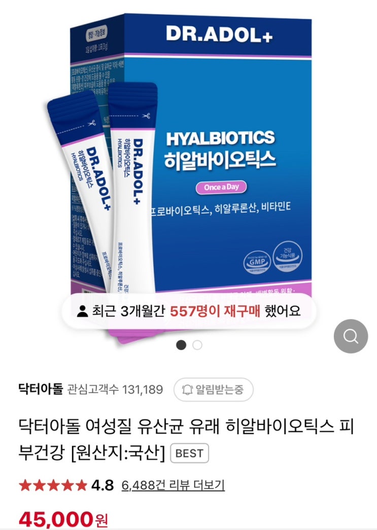내돈내산 닥터아돌 영양제 한 달 후기 우연히 접한 닥터아돌 히알바이오틱스를 시작으로 너무 큰 효과를 본...