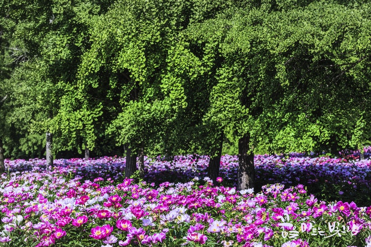 화북면 자천리 2082 작약 꽃밭 은행나무와 함께 작약꽃이 피어 있어 아름다운 풍경을 사진으로 담을 수 있...