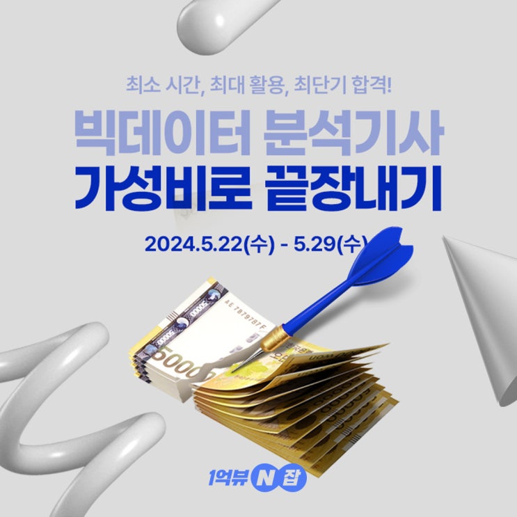 빅데이터분석기사 필기시험 한 달 안에 끝내는 방법! 자세히 알아보기 안녕하세요. 1억뷰N잡입니다. 지지...