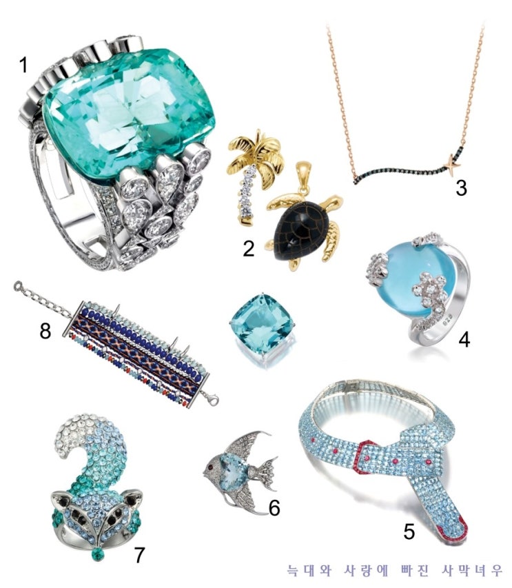 마린룩과 잘 어울리는 푸른색의 주얼리들