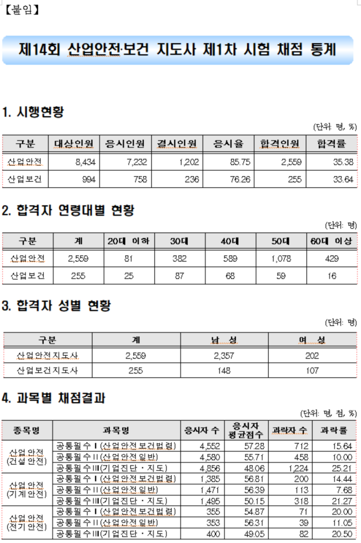 산업안전지도사 1차 합격자 발표했습니다 제14회 산업안전지도사 1차 합격 하신분들 축하드립니다 엄청난 ...