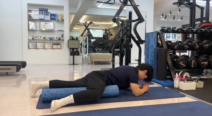 폼롤러로 마사지하며 운동 휴식을 보냈어요