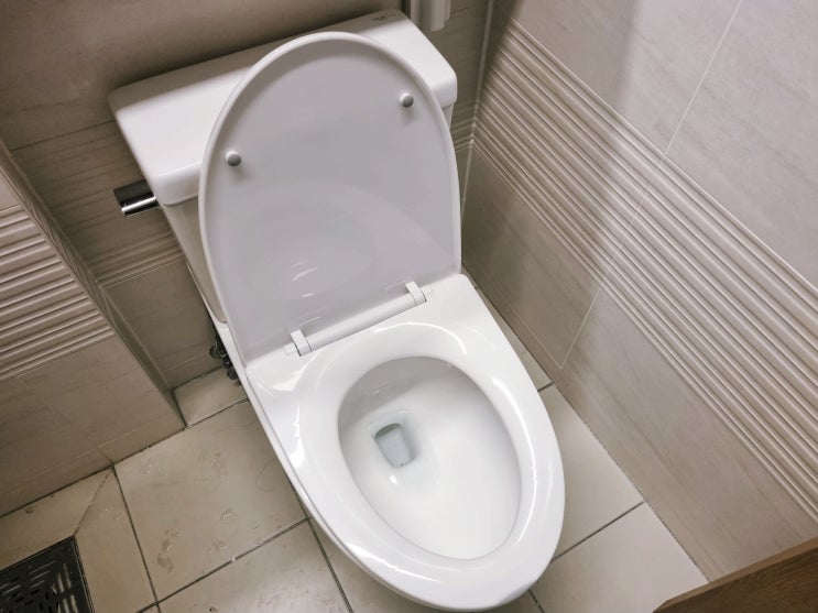 타일이 색깔이 어둡다보니까 변기가 더 하예보이는것 같습니다. 이곳에 방문드리게된 이유는 변기커버교체...