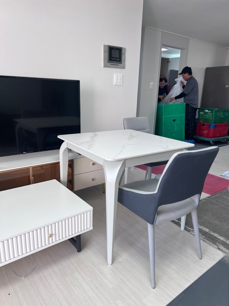 우리는 주로 티비앞에서 좌식접이식테이블 앞에서 식사를 했고 식탁은 거의 안썼는데 이번에 4인식탁을 버...