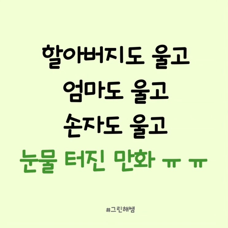 할아버지, 엄마, 손자 울린 만화+시 ☘️ 자세히 보아야 예쁘다 오래 보아야 사랑스럽다 너도 그렇다 「풀...