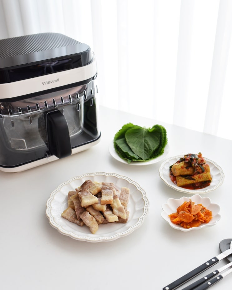글라스로 투명하고 깨끗한 대용량 유리에어프라이기♬ 위즈웰 글라스 에어프라이어로 삼겹살 요리를 해 보...
