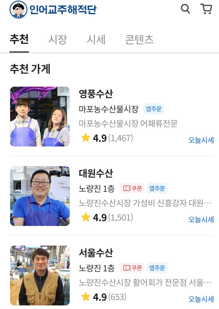 수산시장의 해산물 시세를 미리 볼수있는 필수앱,인어교주해적단