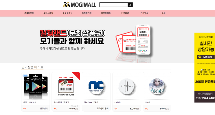 문화상품권(컬처랜드) 저렴하게 살 수 있는 곳 모기몰