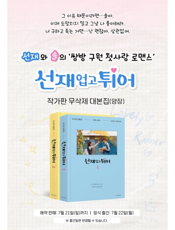 tvn 드라마 선재 업고 튀어 -작가 판 무삭제 대본집 예약 안내/류선재,임솔,김태성,백인혁