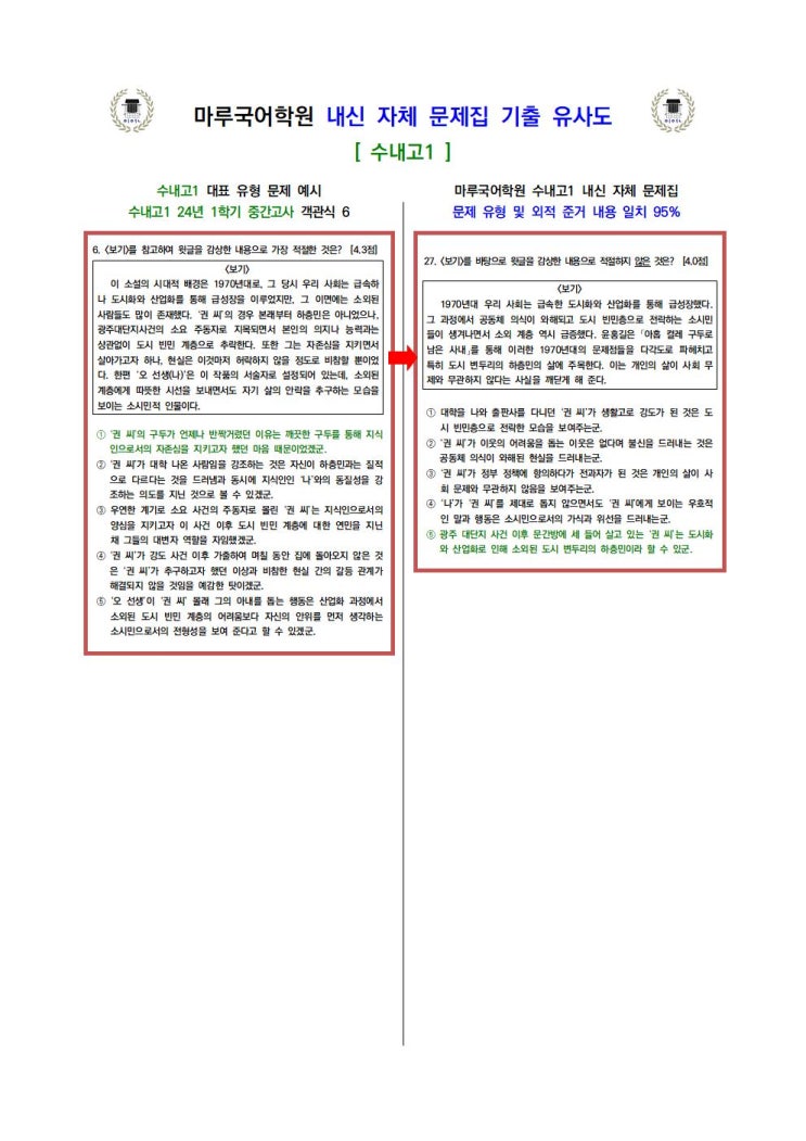 [만수동 국어학원]2024년 1학기 중간고사 결과