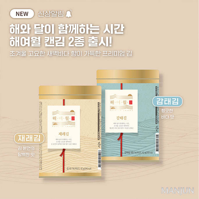 만전김 프리미엄 김, 해여월 캔김 재래김, 감태김 출시!
