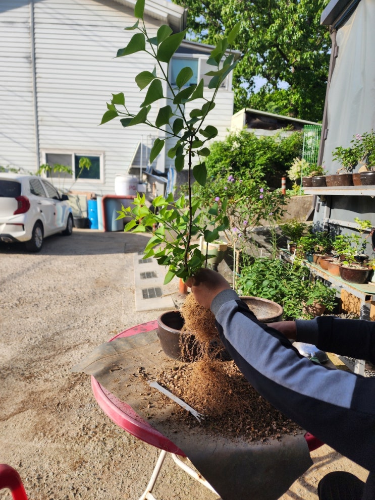 몇 해 전 지인으로 부터 얻은 흰라일락 얼마나 좋아했던지.. 작년에 큰 화분에 옮겨 심으면서 뿌리 나누기...