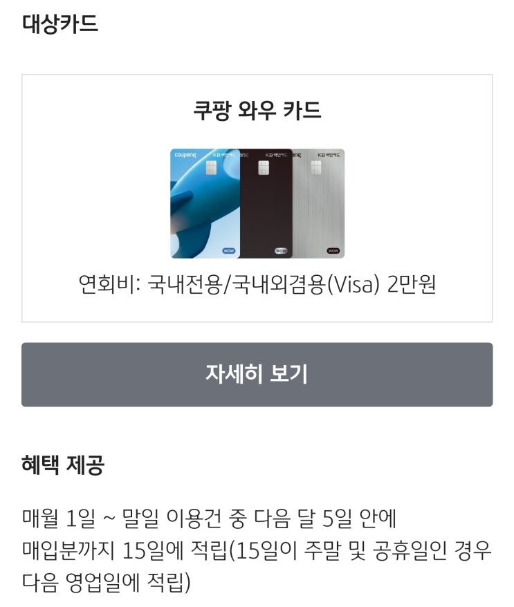 쿠팡 와우 카드 발급 혜택 :: 실적 달성안해도 쿠팡캐시 적립 영화 관람권 월 6회, 영화 50% 할인 월 2회