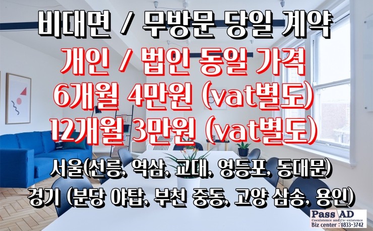 비상주사무실 2종근린 최저가 공유 소호 비상주오피스 가격 과 업종별 위치 이전 및 사업자등록 주소임대 방법(분당, 서초, 강남, 역삼, 송파, 동대문, 영등포, 용인)