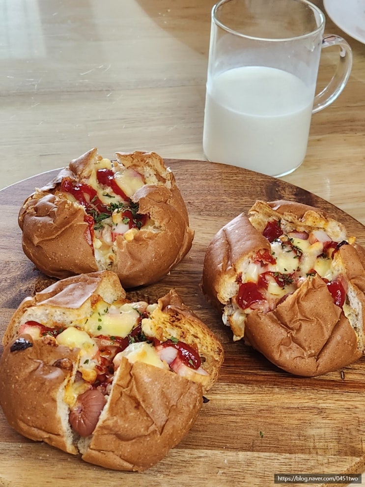 아이 간식 에어프라이어 모닝빵 피자 만들기