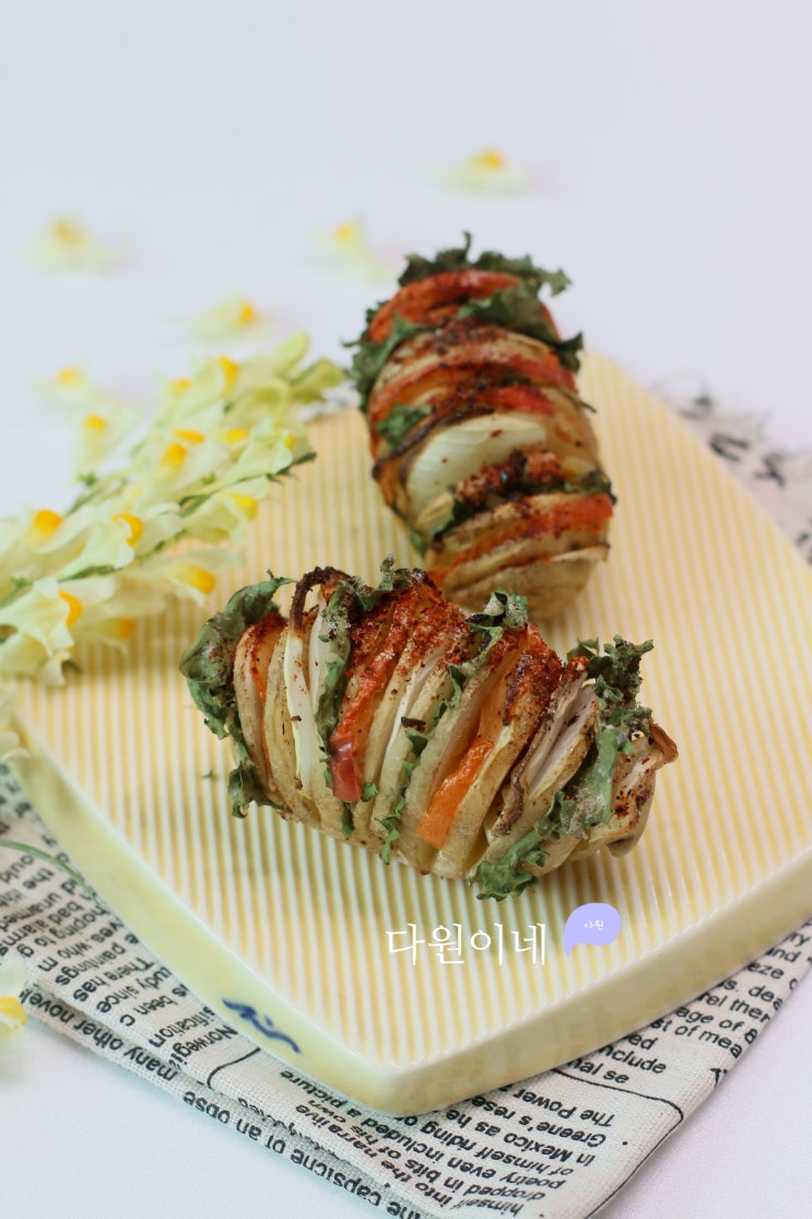 에어프라이어에 구운 아코디언 감자 감자요리 감자 철이 다가오네요 우리 텃밭 감자는 아직 캘 시기는 아니...