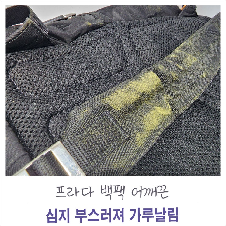 정체불명의 가루..여기저기 묻고 난리도 아닙니다.프라다 백팩입니다. 이게 도대체 무슨일 일까요 ? 프라다...