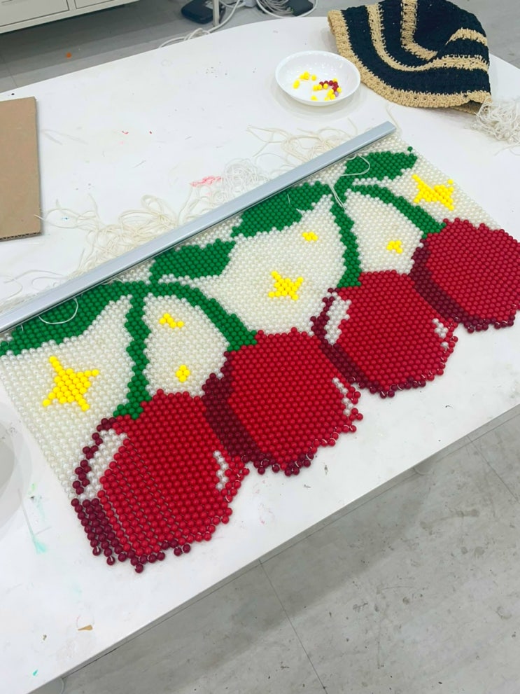 [양산공방]좌충우돌 레트로 체리 비즈발 만들기-#4 마감 및 사각봉 걸기
