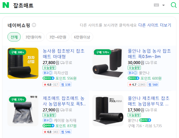 잡초제거 쉽게 원예용품 제초매트 깔아서 완료