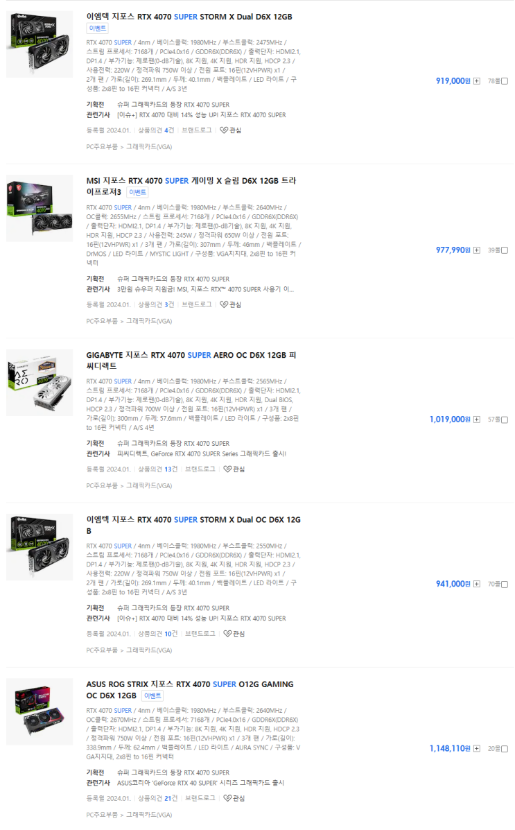 엔비디아의 그래픽카드 지포스 RTX4070 SUPER, 지포스 RTX4070Ti SUPER, 지포스 RTX4080 SUPER 알아보기 - 돌아온 지포스 SUPER 네이밍 그래픽카드